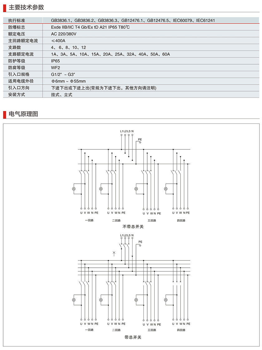 BXM(D)系列防爆照明(动力)配电箱(IIB、IIC、Ex tD)
