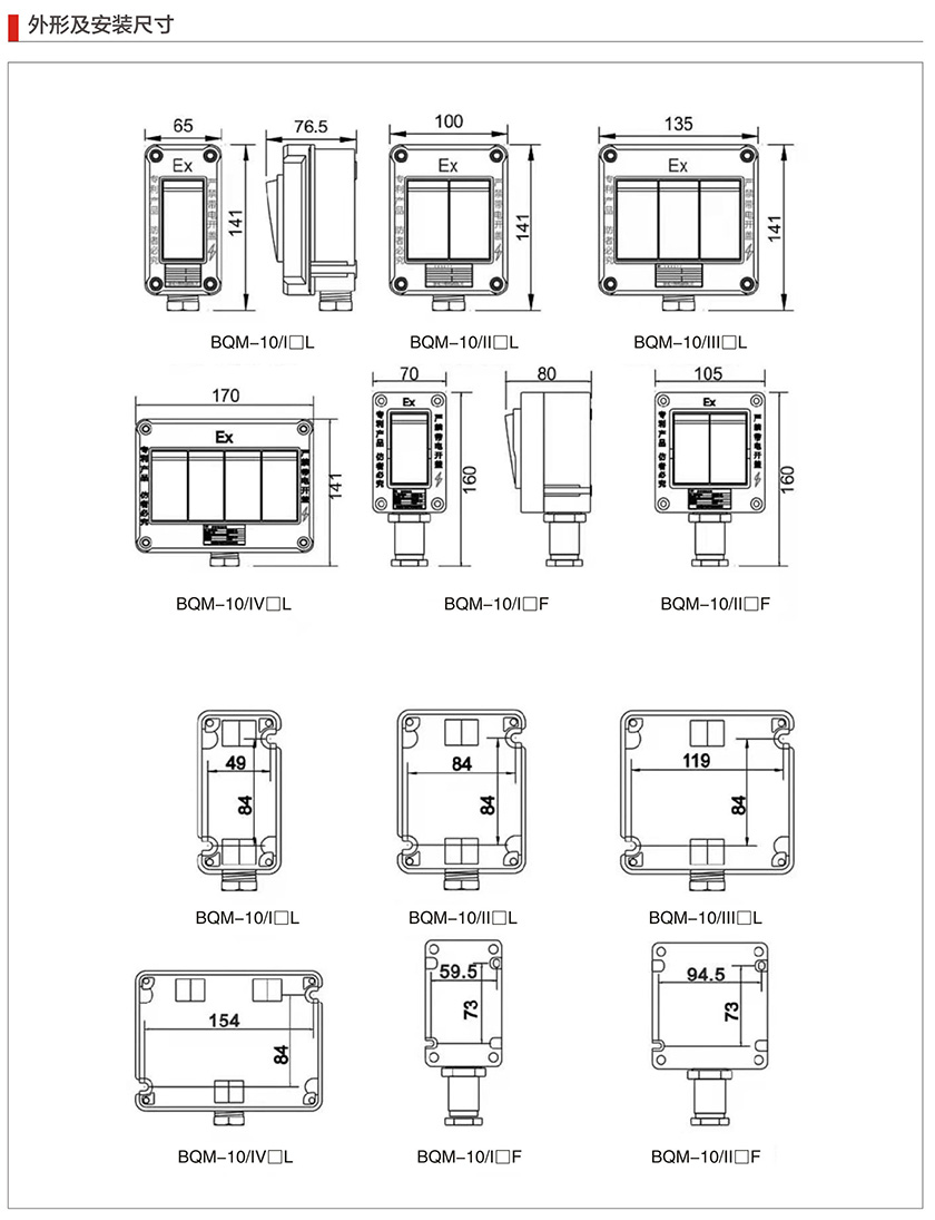 BQM-10系列防爆墙壁开关(IIC、Ex tD)